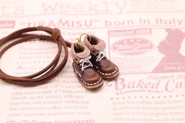 ゆらゆらと胸元で揺れる小さなミニチュアブーツ♪