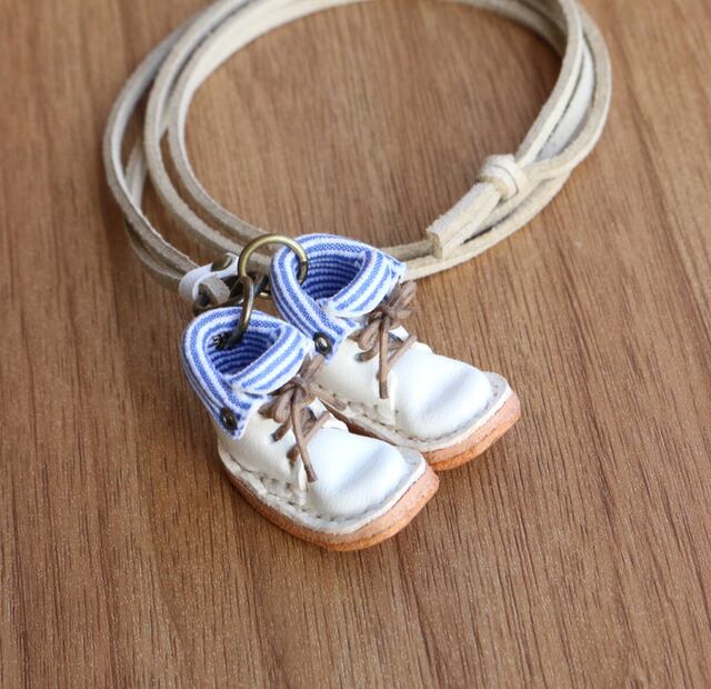 小さな革ブーツのネックレス|スノーホワイト裏地付